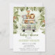 Adorable Jungle Safari Animals in Cars baby shower invitation – perfect for a fun and wild celebration! Featuring cute animals on a colourful car ride, this invite sets the tone for an unforgettable event.