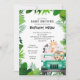 A vehicle full of cute wild jungle safari animals and jungle plants, perfect theme for boy, girl or gender neutral baby shower invitations. MATCHING items in our collection.