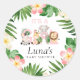 Personalized Girl Jungle Safari Baby Shower Round Thank you Favour Stickers. Designed with watercolor cute baby jungle animals. Matching items in our store Cava Party Designs.