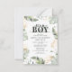 Wild, calm, and elegant boys safari animal baby shower invitation featuring a giraffe, gold effect and green leaves. Perfect for boys baby shower invitations note card