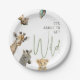 Introducing our jungle safari it's about to get wild baby shower paper plates, perfect for a cute and whimsical celebration! It features a modern safari animal theme with adorable jungle creatures like a monkey, giraffe, lion, and zebra. With its simple natural boho-inspired watercolor landscape, this sweet scene is ideal for welcoming a little boy or girl. This design is as charming as it is timeless. Please feel free to ask any questions regarding the product's design; we are happy to help!