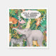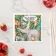 Jungle Safari Wild Animals Retirement Party disposable paper napkins with a variety of animals including zebra, elephant and pink flamingo amidst dense tropical foliage and the words It's a Jungle Out There! A fun, youthful, playful design for anyone leaving the work life and heading off into the wilderness of retirement.
