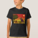 Graphic illustration of elephants and giraffes in the sunset. This unique African jungle design will stand out on any shirt style. Choose your favourite shirt colour and add any text to back side.