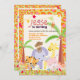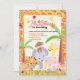 PixDezines jungle theme for a fun birthday bash. Featuring baby animals, pink hippo, a purple elephant, yellow polka dots giraffe, tiger cub as well as a cheeky little brown monkey riding on an elephant head. Zebra print is a finishing touch on the background.