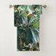 Photo de billets verts dans la forêt tropicale. Au premier plan, un immense Croton arboré de grands feuilles décoratifs lumineux.