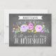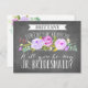 Ask your bridesmaid with a beautiful card that says "I can't say 'I do' without you." This bridesmaid card features lovely watercolored flowers and a mix of modern typography, all on a trendy chalkboard background. Make it easy for them to say yes with this beautiful and stylish card. Available in maid of honour, matron of honour, junior bridesmaid, and flower girl versions. Say thank you with a matching thank you card.