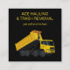 Junk hauling and trash removal business card in a cool square format business card design that allows you to feature your company name on the front and y our details on the back with two side printing included.