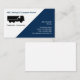 Junk hauling and dumpster rental service business card template in a simple modern design that includes an image of a dump truck and blue background color you can change. Designed as a business card template for residential or commercial trash hauler, junk removal, or construction and real estate clean out service