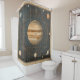 A captivating celestial diagram featuring a large, Jupiter-like planet at the centre, encircled by planets and cosmic bodies in precise concentric orbits. Set against a deep starry background with a detailed grid and numerical markings, this astronomy-inspired shower curtain is perfect for space enthusiasts, stargazers, and lovers of planetary science. An ideal gift for celestial events, solstices, and those fascinated by the mysteries of the cosmos.