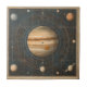 A captivating celestial diagram featuring a large, Jupiter-like planet at the centre, encircled by planets and cosmic bodies in precise concentric orbits. Set against a deep starry background with a detailed grid and numerical markings, this astronomy-inspired ceramic tile is perfect for space enthusiasts, stargazers, and lovers of planetary science. An ideal gift for celestial events, solstices, and those fascinated by the mysteries of the cosmos.
