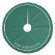 Vous pouvez changer l'arrière - plan de couleur solide vert chasseur sur cette jupe de sapin de Noël personnalisée. Vous pouvez également modifier la couleur de l'image de bordure blanche mince. Customisez la police de votre nom de famille.