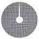 Holiday tree skirt is shown in a black and white color buffalo plaid print design, customize this item or buy as is.