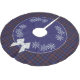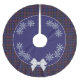 Elégante jupe de sapin écossais écossaise à tartan, avec des graphismes d'un cercle bleu régence (presque pourpre) superposé avec de gros flocons de neige, autour des bords. Des graphismes d'un arc blanc, devant la jupe, complètent cette jupe d'arbre festive et chic.