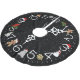 Une horloge vintage blanche visage sur un arrière - plan noir avec des éléments de Noël amusants et des flocons de neige. La couleur Arrière - plan peut être modifiée.