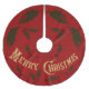 1876 Joyeuses lettres de Noël en or sur une jupe rouge de sapin de Noël avec sainte et baies.