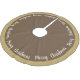 Jupe d'arbre de Noël La jupe d'arbre de Noël est présentée dans une couleur brun latte et or mat avec le texte en ivoire de Joyeux Noël écrit en script tout le long de la jupe d'arbre avec une bordure de couleur solide. customisez cet article ou achetez tel quel.