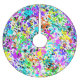Je collectionne les arbres de Noël. L'un de mes arbres est un arbre blanc que je décore dans des tons néons. Bien que ce ne soit pas pour tout le monde, beaucoup de gens apprécient quelque chose de différent du traditionnel rouge et vert. Cela aurait l'air extraordinaire sous l'un des nombreux arbres colorés des magasins en ce moment ou un noir ou métallique. La jupe arborée affiche un oeil attrayant abstrait dans les tons rose, violet, bleu, turquoise, vert, baies, orange, jaune, noir et plus. Amusant !