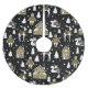 Apportez un charme ludique à votre décor de vacances avec cette jupe d'arbre fantaisie avec des illustrations blanches et dorées d'animaux habillés en hiver, y compris un écureuil, un renne et un ours polaire, au milieu des arbres et des bâtiments sur un arrière - plan noir frappant. Idéal pour ajouter une ambiance festive et conte sous votre sapin de Noël, ce design est idéal pour les amoureux des animaux et tous ceux qui aiment la décoration de vacances unique et imaginative.