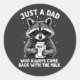 Funny humour sarcastic dad quote design of a raccoon that says "Just a dad who always came back with the milk", for husband from wife, daughter or son. for new dad, dad who love humour, and dad jokes