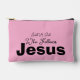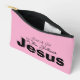 Just a Girl Who Follows Jesus Pink Cosmetic Bag. Customize further by changing the background color with the Edit Tool. Enjoy!