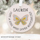 Just a girl who loves butterflies ornament is personalized with her name along with a room for a personalized note on the back. Perfect for the annual Christmas holiday ornament tradition, a birthday gift, or for anyone who fits the description! Would look cute hanging in her room.
