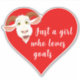 Cute red heart sticker with a cartoon laughing goat, and the words Just a girl who loves goats. Fabulous gift idea for goat lovers.