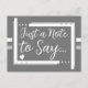 Just a note to say grey white postcard
