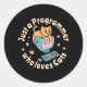 Awesome and funny design showing a cat on the computer and the saying "Just a programmer who loves cats". A must for all programmers and cat lovers.