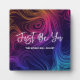 A plaque with a cool pattern with a sixties vibes. Rainbow coloured circles and swirls. Inspirational text says: Just Be You the world will adjust.