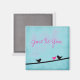 Just Be You Magnet---blue distressed background with hot pink shading. Quote magnet that reads, "Just Be You" with cute birds on a wire--two black and one pink--being herself. Inspirational and motivational refrigerator magnets--great for the office too. Cool inspiring gifts for anyone.