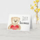 This "just because" watercolour card may seem simple, but it is very versatile. The front shows a big friendly bear holding a plush red heart. The interior contains the text "Just because – here's a big bear hug for you!". I have left the interior text editable, so that you can customize it to your needs.