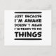 Just Because I'm Awake Funny Saying Sarcasm Joke Postcard