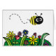 colourful cartoon bee flys over a bright patch of flowers
