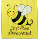 Just Be Awesome Slogan with a Bumble Bee. Bee Lovers Design. Cute Bumble Bee Cartoon Smile with Hearts and Swirls. Inspirational and Motivational Quote.