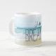 Beautiful sandy beach, blue waves and wispy sky with the words "just breathe". Paradise!