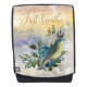 Beautiful digital art collage features "Just Breathe" text in glittery gold script font, ethereal watercolor background and vintage blue bird with crown and flowers.