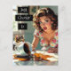 Just checking in postcard. Say hi and keep in touch with a friend of family member with this cute hyper realistic retro postcard with a funny illustration of a woman trying to catch a spilled cup of coffee her cat knocked over.