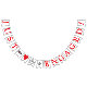 JUST ENGAGED, Red Text - Cute Heart, Diamond Ring, And Arrow WEDDING ENGAGEMENT BUNTING BANNER. Beautiful banner to display or to hold and pose with for stunning engagement celebration photos of the soon to be bride and groom!