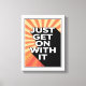 Just Get On With It Inspirational Motivational Canvas Print. Vibrant canvas print in black, white, yellow and orange, with the words, Just Get On With It. A fun and colourful design with words to encourage and inspire. Perfect for those facing challenges to move past fears and insecurities and tap into inner strength and power. A great affirmation to overcome procrastination, build confidence, and Just Get On With It!