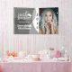 Celebrate and show off your grads with this grey/grey just graduated photo template design. Add photo, name, school and year. This is a modern blue bubbly design on left, and your photo on the right. Perfect for celebrating with all your neighbours and friends.