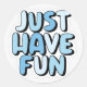 Just Have Fun Printed Classic Round sticker. Use For Crafting, Gift Wrapping, Sticker and labelling.