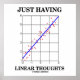 Make others do a double-take with a dose of statistical style with this poster featuring linear regression on a graph along with the saying "Just Having Linear Thoughts". Memorable stats geek humour poster for any linear thinker!