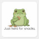 Crumbs and puffed cheeks. Frog is not judging, just munching.