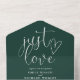 Just Love Elegant Script Emerald Green Wedding All In One Invitation