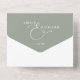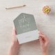 This all-in-one minimalist wedding invitation features elegant typography on a sage green background. The invitation includes a perforated RSVP card that can be individually addressed or left blank so you can handwrite your guest's address details. Designed by Thisisnotme©