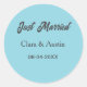 Just Married add couple name date year wedding sim Classic Round Sticker