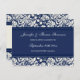 Marriage announcement postcards in elegant dark navy blue and cream off white classic floral damask pattern, customizable with your names and wedding details, the perfect way to announce your wedding to friends and family. Available in a wide range of matching wedding products.