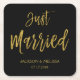 Just Married Black and Faux Gold Foil Coasters which are perfect for a Black and Gold Wedding Reception.The custom napkins allow the ability to update the bride and grooms name and wedding date.