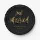 Just Married Black and Faux Gold Foil Paper Plates which are perfect for a Black and Gold Wedding Reception.The custom napkins allow the ability to update the bride and grooms name and wedding date.
