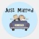 Bride and Groom in a car after the wedding. Great T Shirts and gifts for the bride and groom to be. Great T shirts mugs, buttons, hats and totes for the honeymoon.